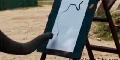 Το video που προκαλεί συγκίνηση. Ελέφαντας ζωγραφίζει ελεφαντάκι που κρατάει ένα λουλούδι.