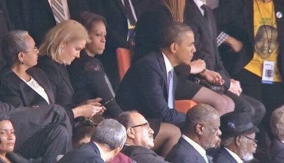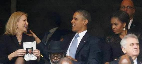 Και όλα αυτά στην επιμνημόσυνη δέηση για τον Ν. Μαντέλα. Η Μισέλ αντιλήφθηκε πως ο σύζυγός της, έκανε “φλέρτ@ρε” με την πρωθυπουργό της Δανίας Χέλε Θόρνινγκ Σμιτ, και του έριξε ένα βλέμμα… Ενώ στην συνέχεια θέλησε να διακόψει μια και καλή την όλη κατάσταση και κάθισε ανάμεσα τους! Σύμφωνα με τους χρήστες του διαδικτύου ο Obama μούτρωσε με την κίνηση της συζύγου του…